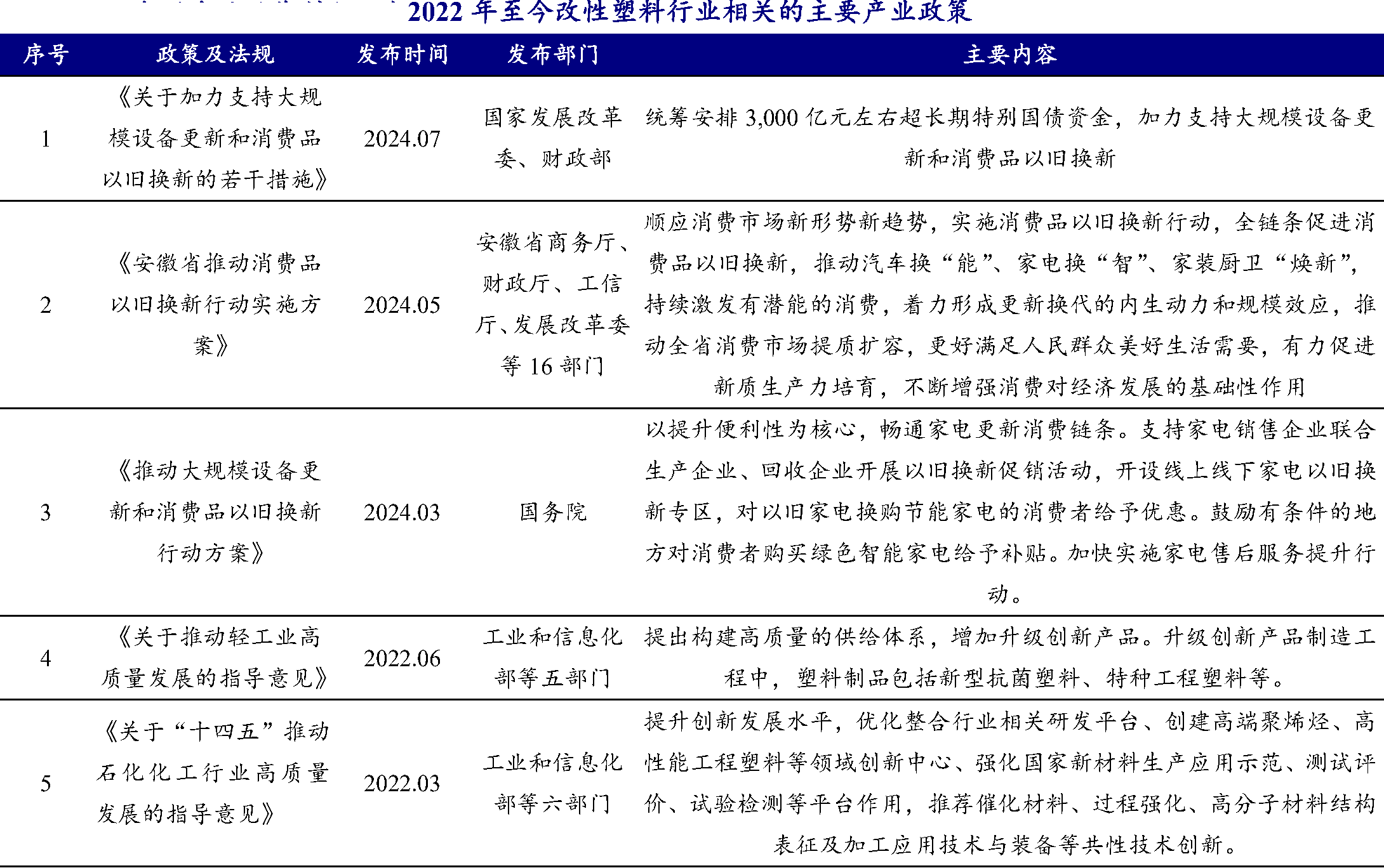 近年来,国家和地方相继出台了一系列鼓励政策,大力推动改性塑料等高分子材料行业加快发展。