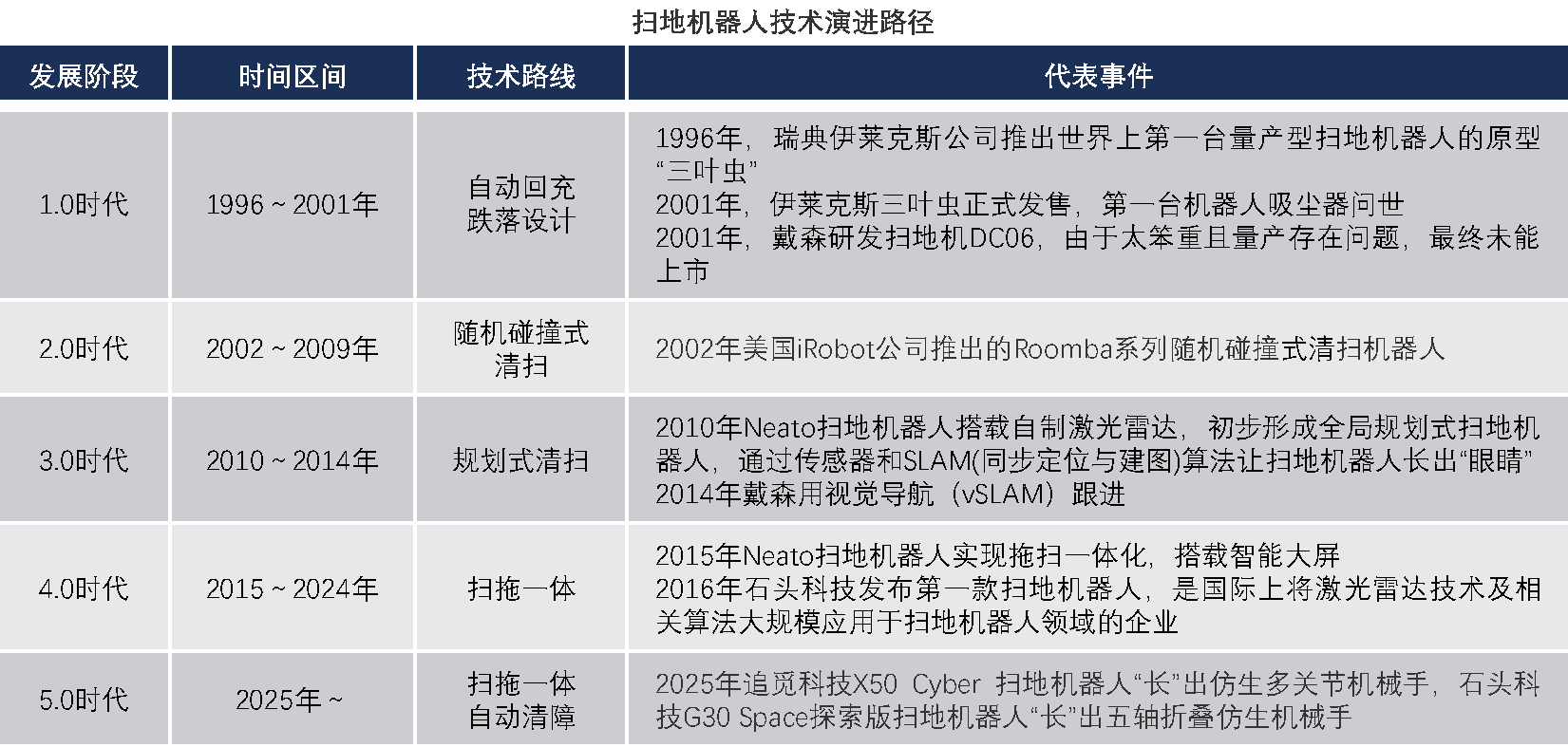 扫地机器人起源于欧美,已历经四次技术迭代,目前已进入第五次技术迭代。