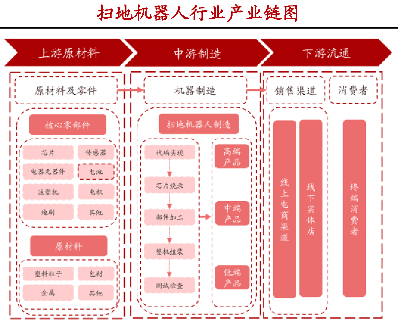 从产业链来看,主要包括上游原材料、中游制造和下游流通环节。上游核心部件国产化率持续提升,降低对外依赖;中游头部企业通过自建产线与智能化生产优化成本;下游跨境出海模式成熟,欧洲市场订单实现高速增长。