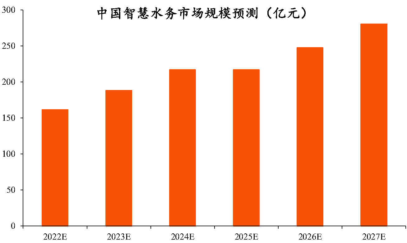 另据统计,2023年我国智能水务市场规模约为188亿元,预计于2027年达280亿元,复合年均增长率10.5%。