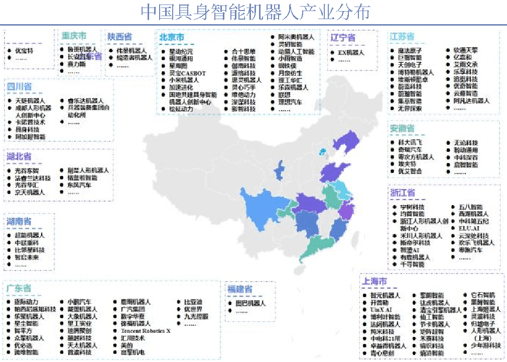 目前国内已形成长三角、珠三角、京津冀、成渝四大核心产业集群,以及武汉、合肥等新兴集聚区,地方性平台更好地实现了区域资源共享、产学研合作加深。上海、北京等地成立的数据采集中心成为一大地区性发展特色,紧密结合当地产业链布局和特色,充分发挥各地优势,加速具身智能技术在不同领域的落地应用,同时也成为了批量采购人形机器人、推动量产的重要角色。